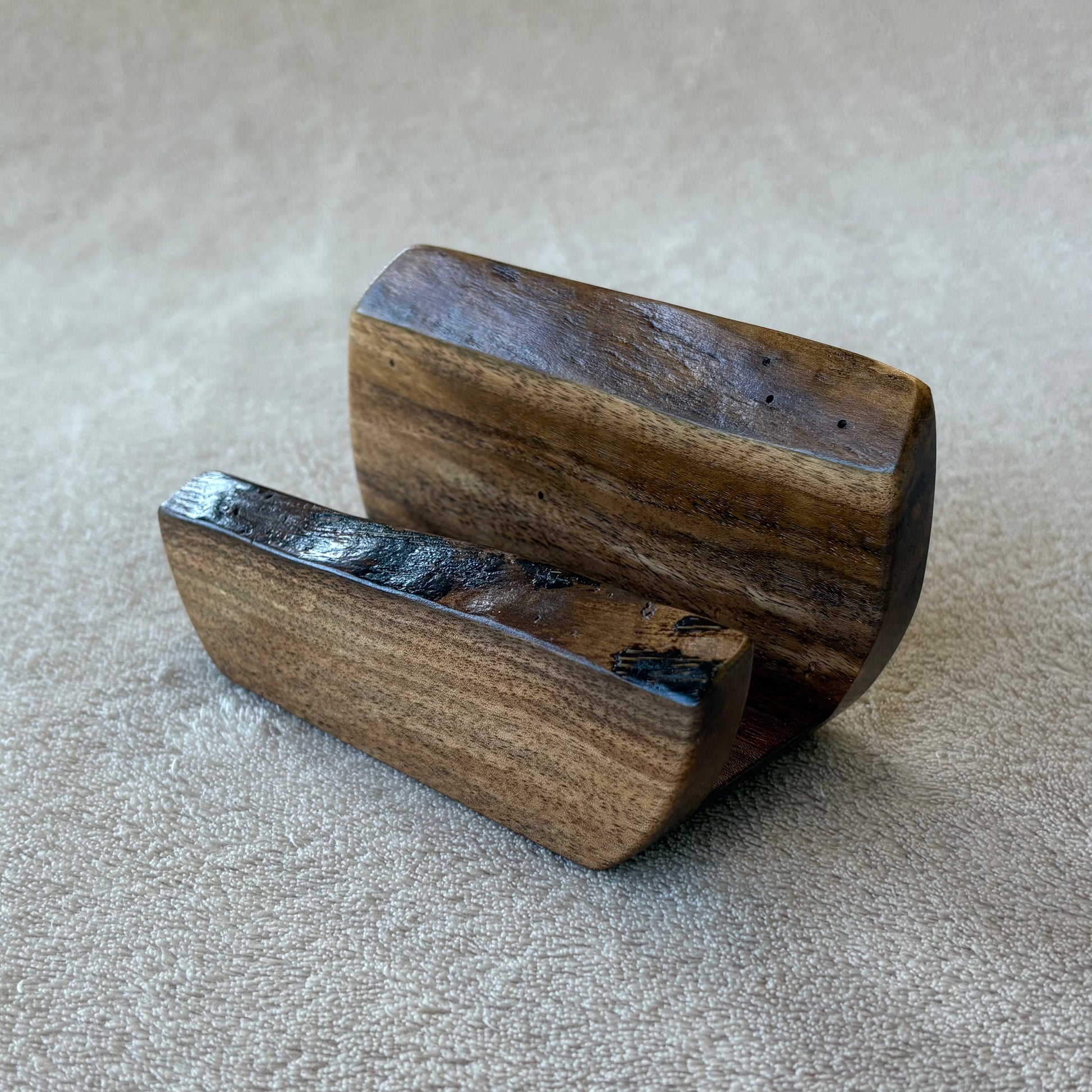Crafted from river birch with a natural live edge, this rustic business card holder brings a touch of nature to your desk. Its unique grain and organic shape make each piece one-of-a-kind, perfect for showcasing your cards with earthy charm and simple elegance.
